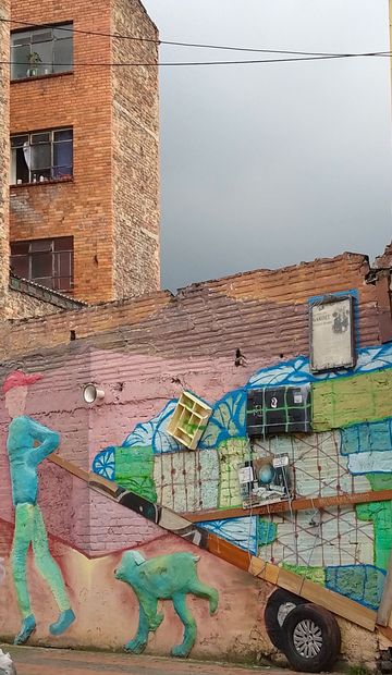 En allant faire mon shopping au Mallplaza NQS, avec, à visiter le trio IKEA, Homecenter et Décathlon, je traverse des quartiers populaires, d’ateliers et de petites fabriques. Ainsi qu’une zone de dépôt des matériaux récupérés. Et en hommages à ces récupérateurs, je suis tombé sur une fresque artisanale, hommage aux recicladores.