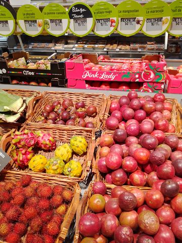 - le kilo de fruits de la passion de 3,5€ le kilo à 2,99€ ….. la pièce! Et il en faut des pièces pour faire un kilo!