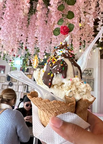Glace quelconque, pas assez crémeuse à mon goût (mais réellement au goût de riz au lait), cornet en biscuit maison délicieux, mais le lieu est surtout pour se prendre en photo en fait! Ce que l’on a bien évidemment fait!