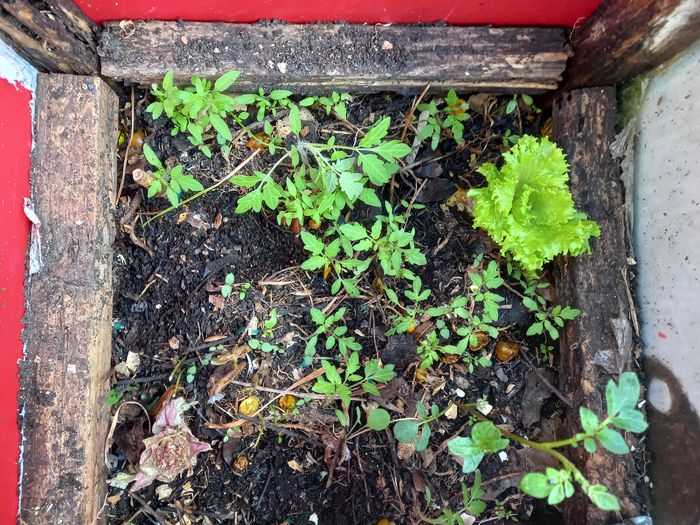 Ou encore, dans le vieux composteur, qui sert maintenant exclusivement de germoir, voir de serre!