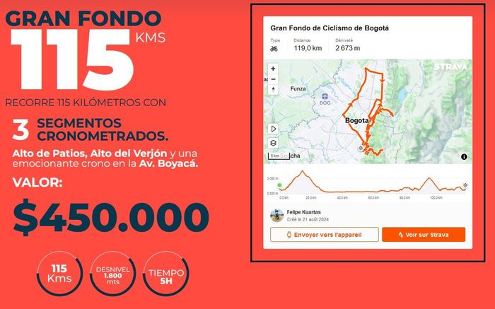 Ce titre, Gran Fondo de Bogota, ne parlera sûrement qu’aux aficionados du cyclisme, même si ils ne pratiquent pas forcément l’espagnol, car, grâce à Strava, c’est un peu devenu une appellation courante.