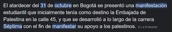 Une manif étudiante à destination de l’ambassade de Palestine, située donc dans la calle 45 (jamais aperçue) , mais qui a bloqué une grande partie de la Septima et de la Caracas.