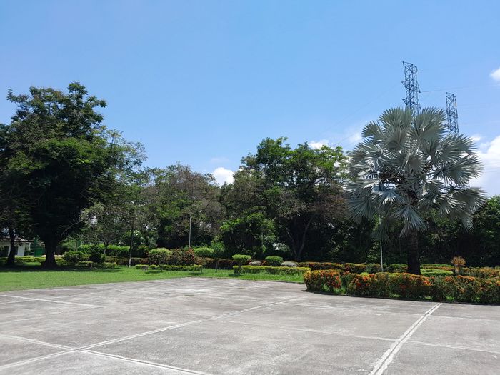 De l’extérieur…. pelouse, immense parking, arbres majestueux…