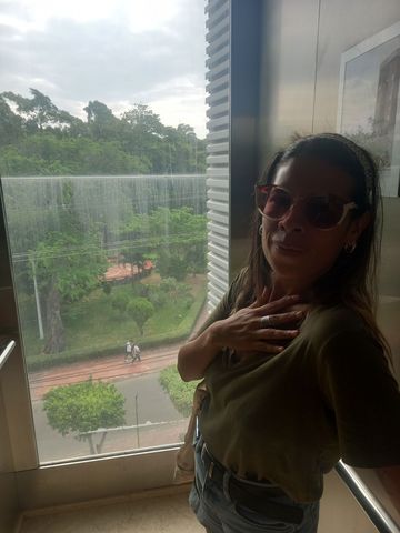 Ascenseur vitré et vue sur le parc depuis la chambre….