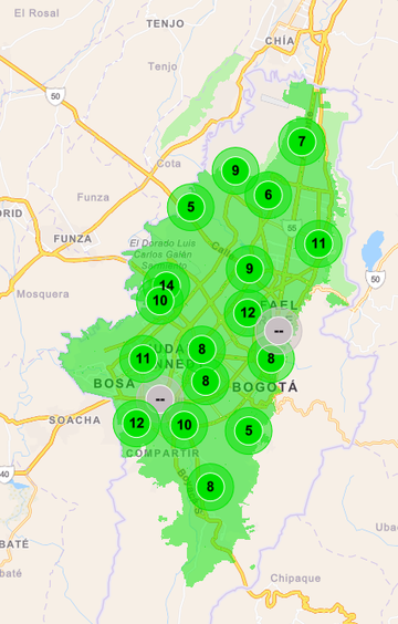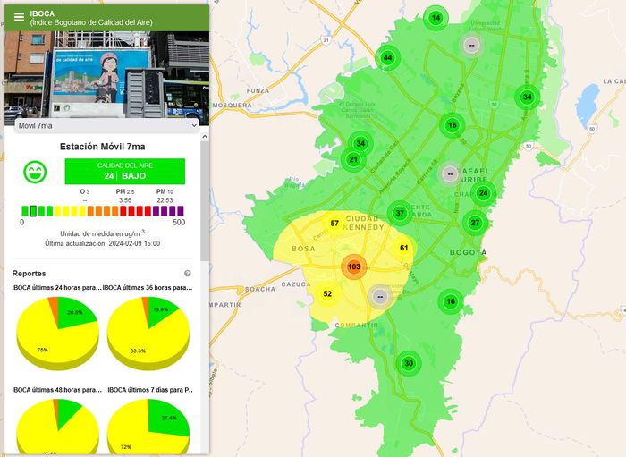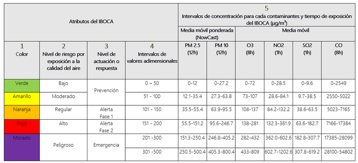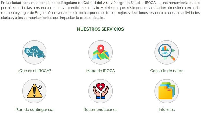 IBOCA, c’est en V.O, Índice Bogotano de Calidad del Aire y Riesgo en Salud. Donc l’organisme chargé de mesurer mais aussi de communiqué à la population, la qualité de l’air et, liés, les risque pour la santé!