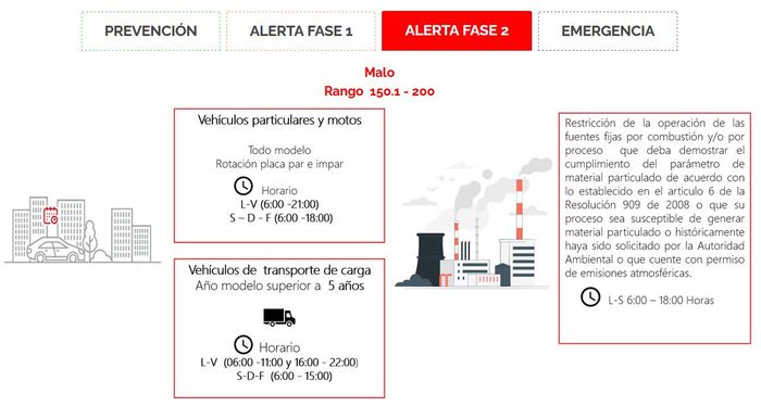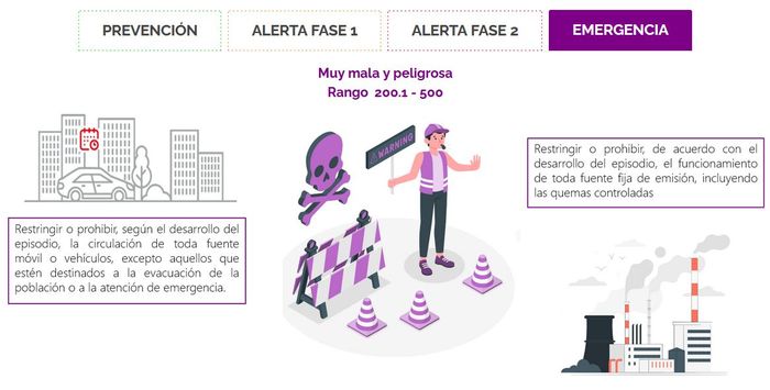 Mais aussi pour les instances dirigeantes de la ville, d’expliquer les plans d’action en fonction des différentes situations (toujours par couleur pour rendre le tout plus simple). Justifiant ainsi les plans de circulation, le fameux Pico Y Placa, voir la restriction ponctuelle pour les véhicules les plus anciens, et même l’interdiction de toute circulation et l’arrêt de toute activité industrielle polluante.