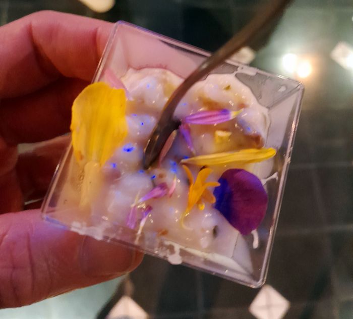 Dont un bon d’achat, soit pour des achats soit pour le restaurant! Que je ne suis pas sûr d’utiliser (d’abord parce que valide jusqu’au 15 août 2023). Ensuite parce que si le lieu est beau, bien placé, l’ambiance agréable, la nourriture ne nous a pas transcendé, surtout Lina, spécialiste de le cuisine italienne.