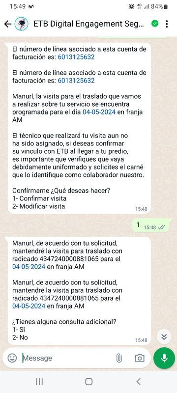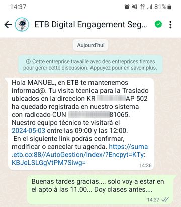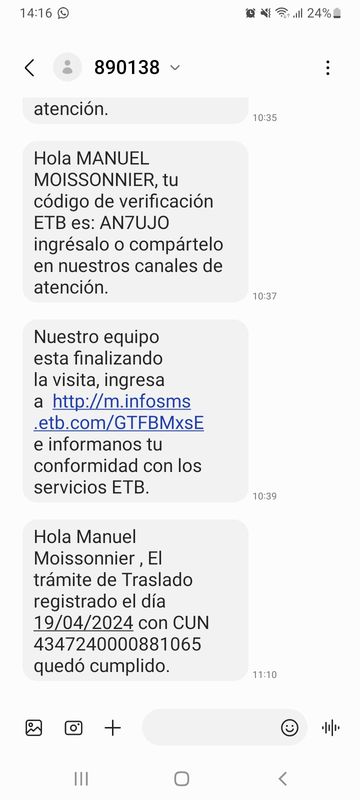 Et alors là, Etb te contacte, pas comme AVANT de venir: enquête de satisfaction, SMS surtout, mais aussi mails que le service a été accompli..