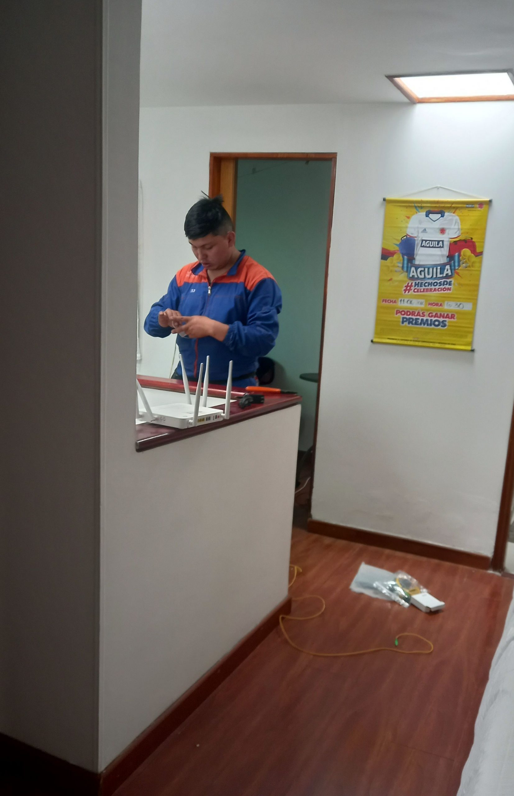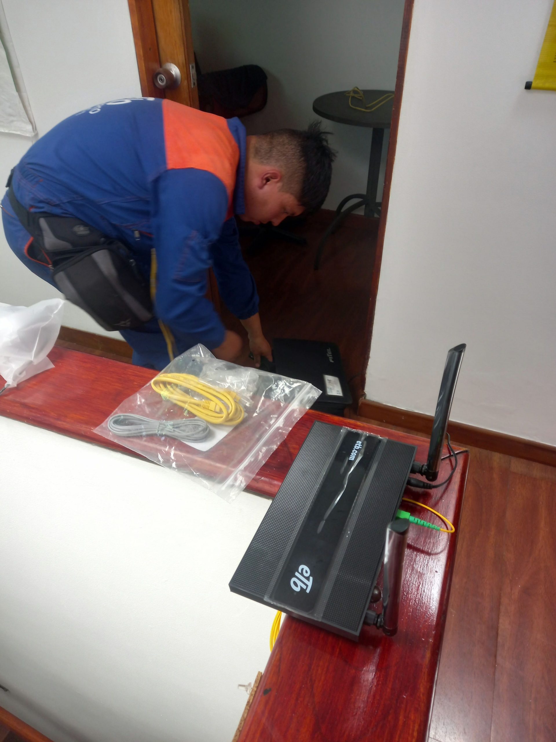 Heureusement, le lendemain, après avoir fait les courses à …6h30 dès le levé, puis vendue ma gazinière avec une visite à domicile à 7h30, le technicien d’Etb se pointait à 9h55. Coup de chance, la fibre arrivant jusqu’à chez moi était déjà propriété de leur compagnie, il a juste eu à récupérer le câble et l’amener là où il me semblait opportun de placer le routeur.