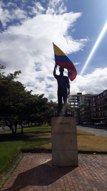 Il y a fort longtemps (déjà plusieurs années), lors d’une balade avec Lina aux alentours de Corferias, le grand centre des expositions (où j’avais par exemple emmené Gilou et Yvette pour la Feria Artesanal ou encore illustré les élections puisqu’il sert aussi de centre de vote géant), nous étions tombé sur cette statue.