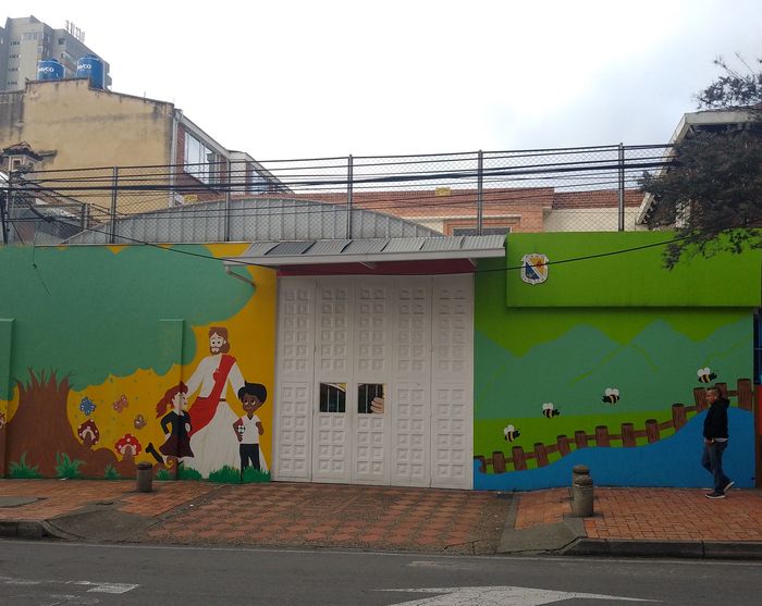 Le jardin colombien, pas forcément les enfants. Je collectionne depuis quelques temps les photos des jardins d’enfants colombiens que je croise sur mon chemin. Principalement à Bogota, mais pas que. Pourquoi? Car les devantures sont quand même évocatrices.