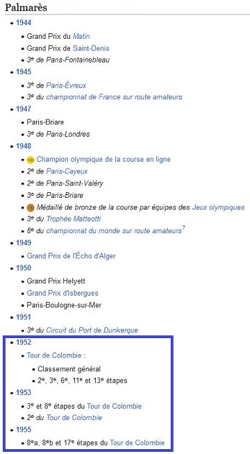 A noter qu’un français, peu connu chez nous, a gagné cette course dès 1952! Il tombera d’ailleurs amoureux du pays, s’y installera, y entraînera l’équipe national colombienne de cyclisme, ouvrira un café à Bogota puis tombera dans la criminalité locale!