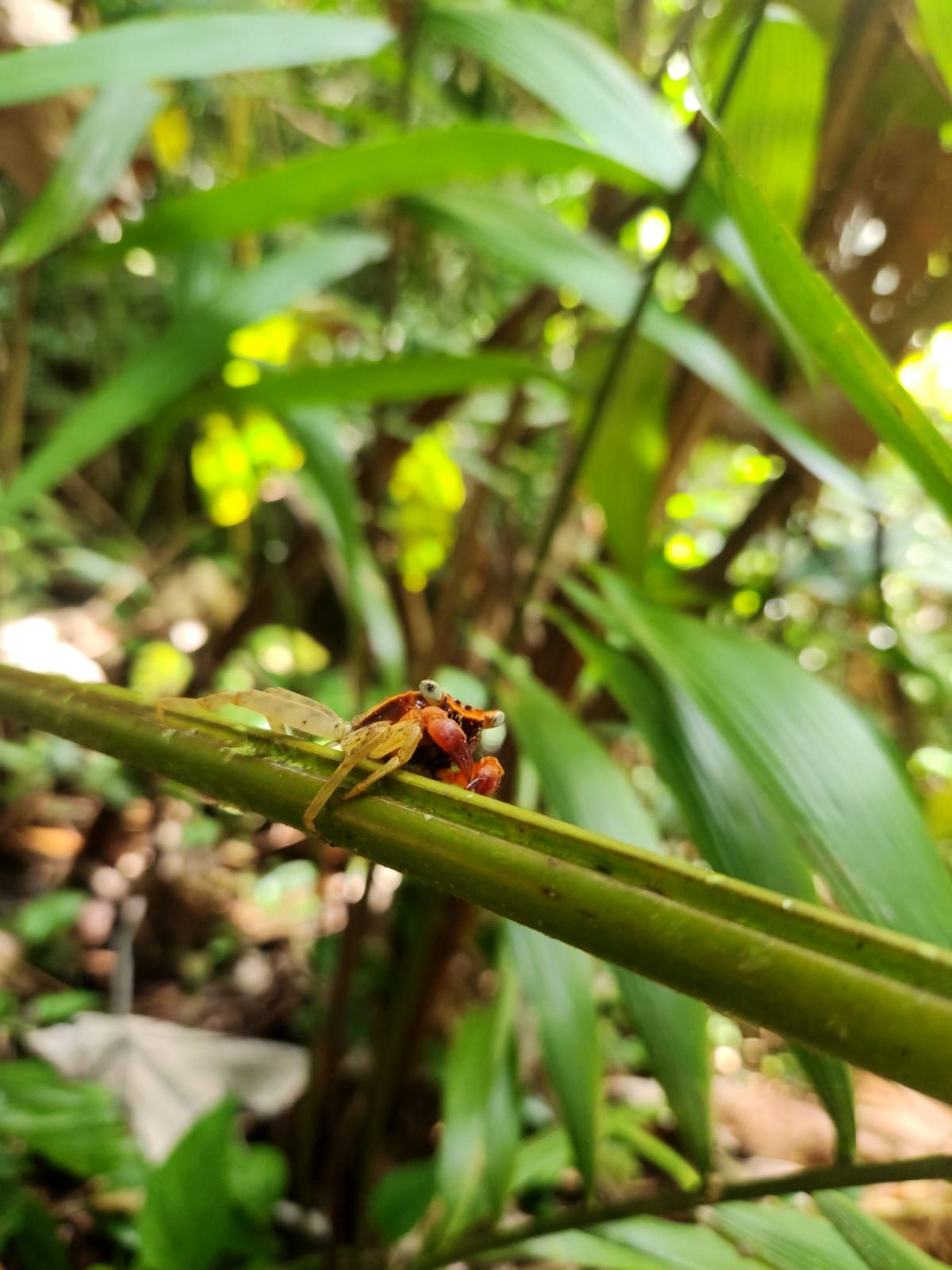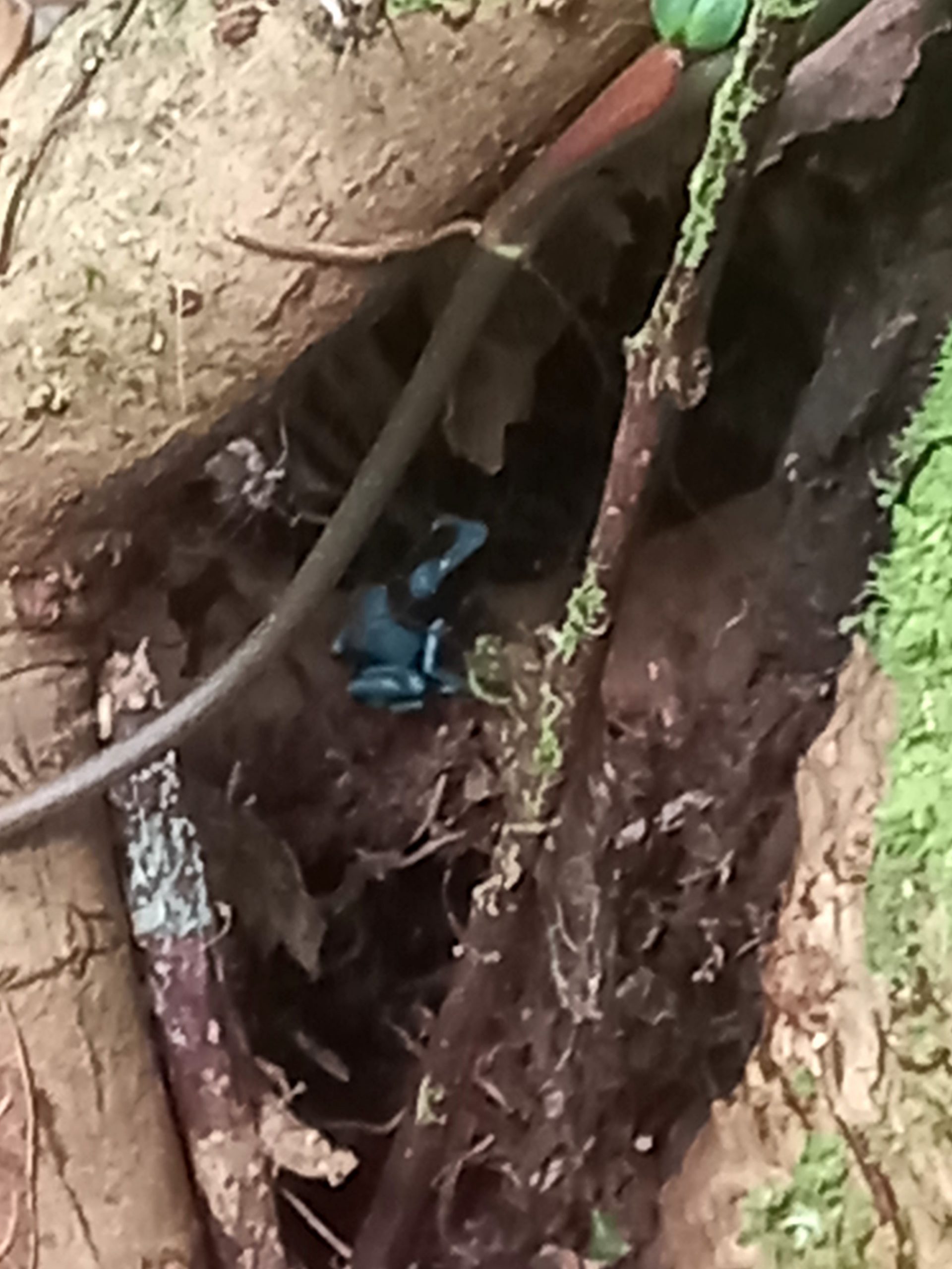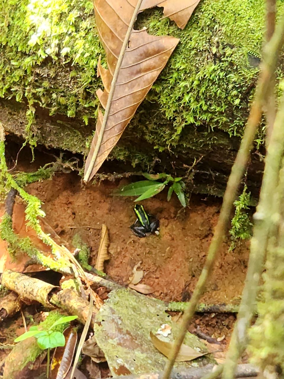 Mais niveau grenouilles, cela donne quoi? Melanino, notre guide nous a prévenu, entre la chasse des locaux, et le manque d’humidité, les chances d’en apercevoir sont faibles. Mais cela, on te le dit toujours après le début de la rando! Car pour l’instant à part un … crabe…. Sauf que nous avons été plutôt chanceux…..