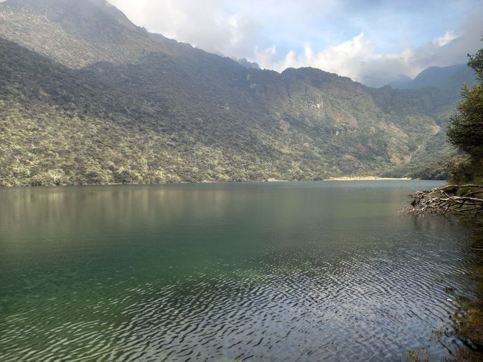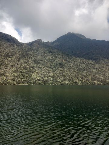 Su color casi negro se debe a que está rodeada por laderas empinadas cubiertas densamente por coloraditos (un tipo de árbol) que se reflejan en el agua
