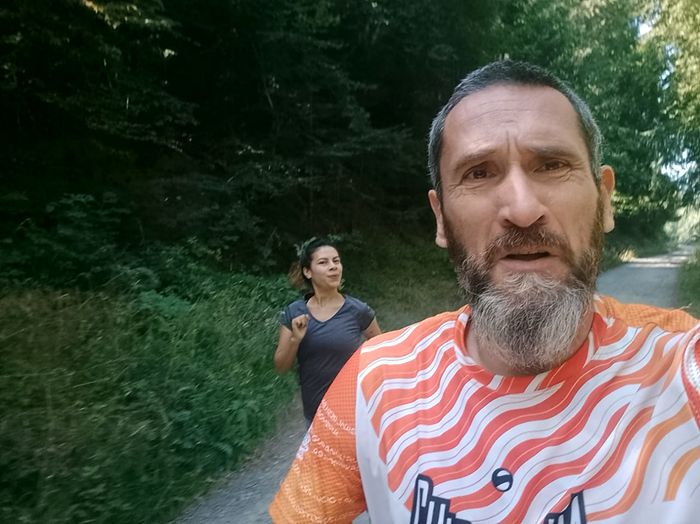 Peut-être pas exotique pour toi, mais au contraire, énormément pour moi! Ternand évidemment, mais aussi la route forestière de St Cyr le Châtoux ou encore l’AVeyron, au Grand-Vabre, avec mon idole du trail de retour de blessure, La Grosse Guigui!