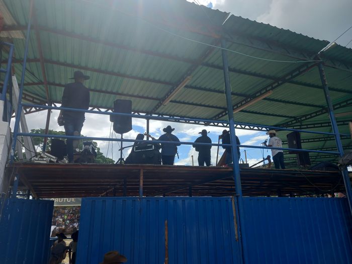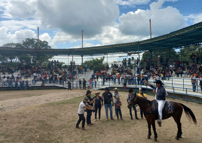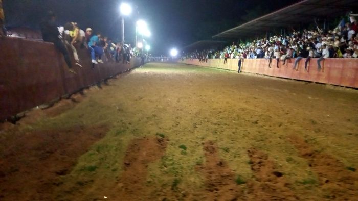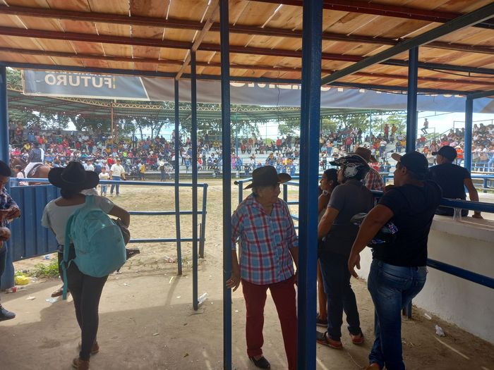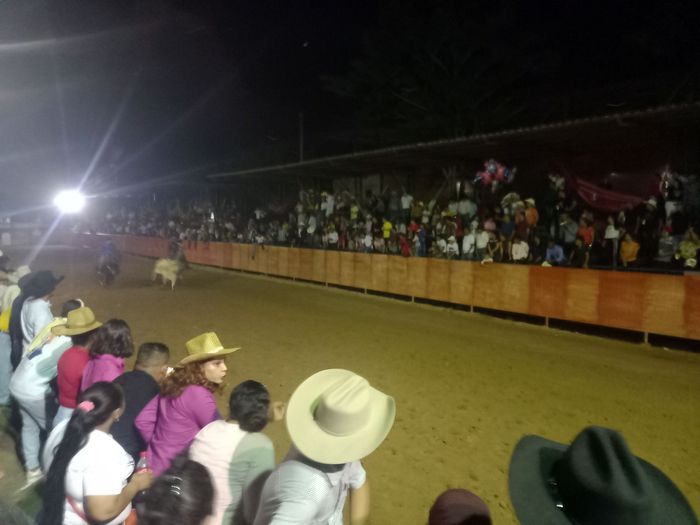 Les arènes quoi! Où nous attend le concert du fameux Dulver Hernandez, artiste cow-boy! Tellement qu’il chante… sur son cheval! Avec son orchestre mené par l’instrument fétiche des LLanos…la harpe!