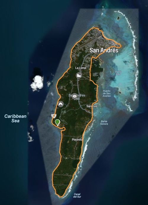 Aujourd’hui (samedi) je suis arrivé à San Andres par le vol d’hier après-midi! Pourquoi faire? Pour courir, la fameuse Vuelta à San Andres, c’est à dire couvrir si possible les 32,5km du tour de cette île tropicale! Et je ne suis pas tout seul, pas mal de Coqs en Vain sont aussi de la partie!