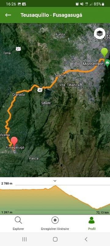D’abord il fallait y aller: 72 km, 2 heures de trajet, il me semblait donc complexe de partir le matin avant la course! J’y suis donc allé la veille! La sortie sud de Bogota est infernale, entre les bouchons de Soacha et les énormes travaux sur l’autoroute, qui avant d’être terminée, est devenue une simple départementale, encombrée de camions. Ajoutons à cela un arrêt par la Police (qui cible beaucoup les motos) de 10 minutes et tu comprendras mes stats! 72 km en 2h30!! DOnt 1h50 pour les 25 premiers, pour sortir de la ville!
