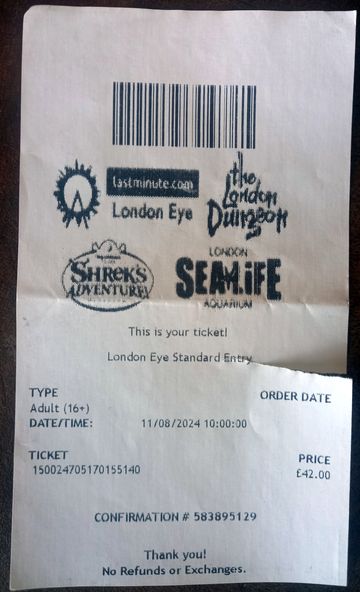 Alors nous avons décidé d’un commun accord, de ne nous offrir qu’une attraction payante. Et Miss Lina a choisi le London Eye, la fameuse grande roue sur les bords de la Tamise. Et ce afin d’avoir une vue aérienne de l’ensemble de la capitale anglaise.