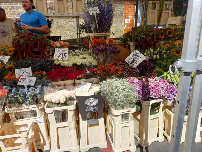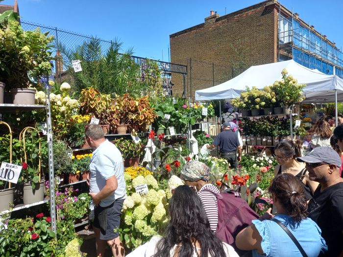 A propos de Colombie, l’autre endroit moins connu que nous avons exploré, dans le typique quartier de …. Colombian Road, c’est le marché aux fleurs du même nom! Malheureusement, quand tu viens de Colombie, second producteur mondial de fleurs, c’est un peu pauvre en couleurs et en découvertes et surtout c’est très couru des bobos londoniens.