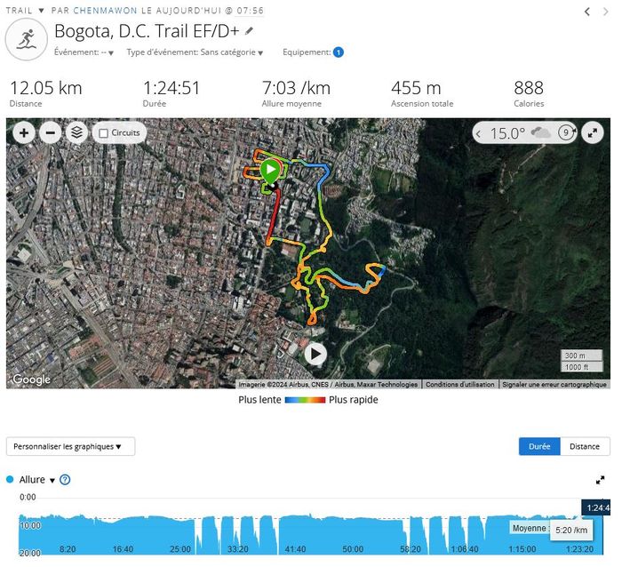 Puis un peu de dénivelé (avec les escaliers au sommet du Parque Nacional) mais en endurance fondamentale (en tentant de garder la fréquence cardiaque en dessous de 130 bpm).