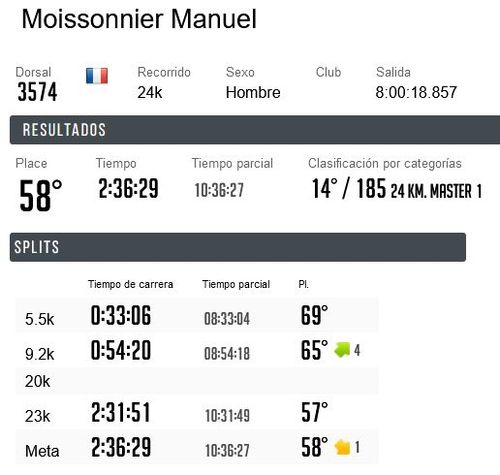 Mais satisfaction vient cependant du classement par catégorie, soit les Masters 1 (entre 40 et 49 ans). Où je me classe 14e sur 185 participants.