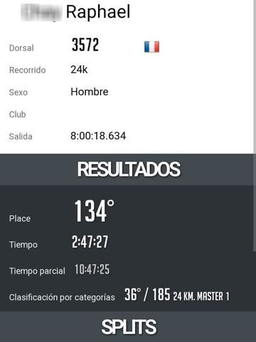 Mais la vraie mauvaise nouvelle c’est que, même en trail, je deviens mauvais perdant! Il y a quelques trucs assez chelous dans les classements…. Comme le 30e classé qui met 1h19′ pour faire les 9,2 premiers kilomètres et seulement 1h02′ pour les quasi 16 suivants!! Même genre d’interrogations pour le 50e et le 52e…. De beaux finisseurs!