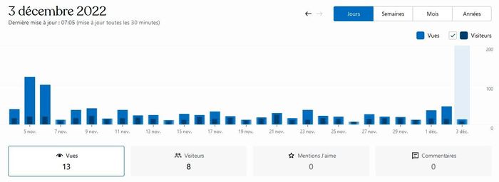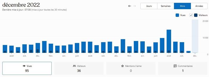 Puis il y a aussi les statistiques de visites, qui ont drastiquement chuté: sur l’ancien blog, mais c’est normal vu que je n’y publie plus de nouveaux articles!