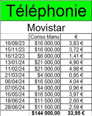 Soit au final 70€ pour les communications « françaises » sur 2 mois, 2 fois pus que 10 mois en Colombie!!