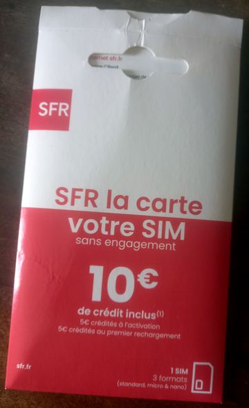 Mais la nouveauté de cette année, c’est qu’avec Free il fallait changer de forfait pour avoir Internet mobile en France, mais ce changement (20€ mensuel) est obligatoirement pour 3 mois! J’ai donc pris une carte SIM chez SFR, en prépayé et je ne recharge qu’au besoin pour l’été: 10€ à l’achat, un mois de données classiques à 10€ et un mois de données européennes à 15€.