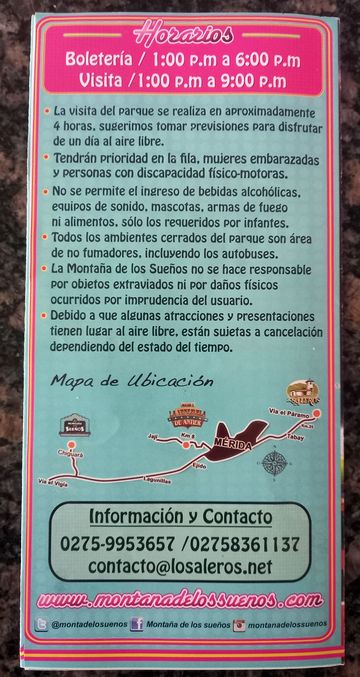 Les premiers regards font qu’on comprend vite le style de parc. Et son état de délabrement! Mais il faut avouer que c’est une initiative familiale privée, et qu’il n’y a que peu de parcs de diversion au Venezuela (3 thématiques, tous à Merida et quelques parcs aquatiques au bord de l’océan).