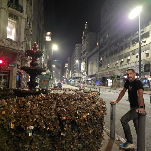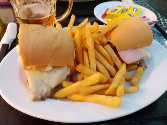 Inquiets, vu que tout, réellement tout est fermé, nous ressortons, après un repos à l’hôtel pour trouver où se restaurer! Heureusement, 2-3 adresses (surtout de comida rapida) finissent par ouvrir vers 18h00, sauvant les malheureux touristes comme nous…. Sandwich Chivito à La Passiva, une chaîne de restaurants visiblement bien en place dans la ville (mais dont un seul des franchisés était ouvert ce jour). Dernières photos nocturnes et il est alors temps de se préparer pour retraverser en Argentine!