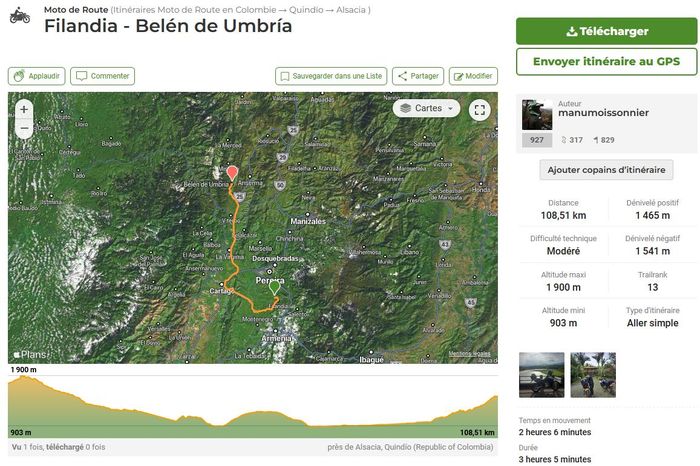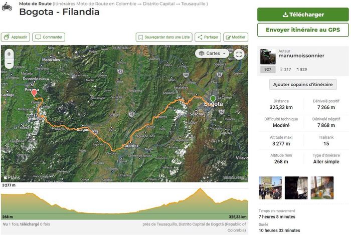 D’abord, puisque nous parlons de moto, évoquons les kilomètres, les durées et le périple! Le trajet total avec la version dézoomée pour situer ce périple sur la carte globale de la Colombie!