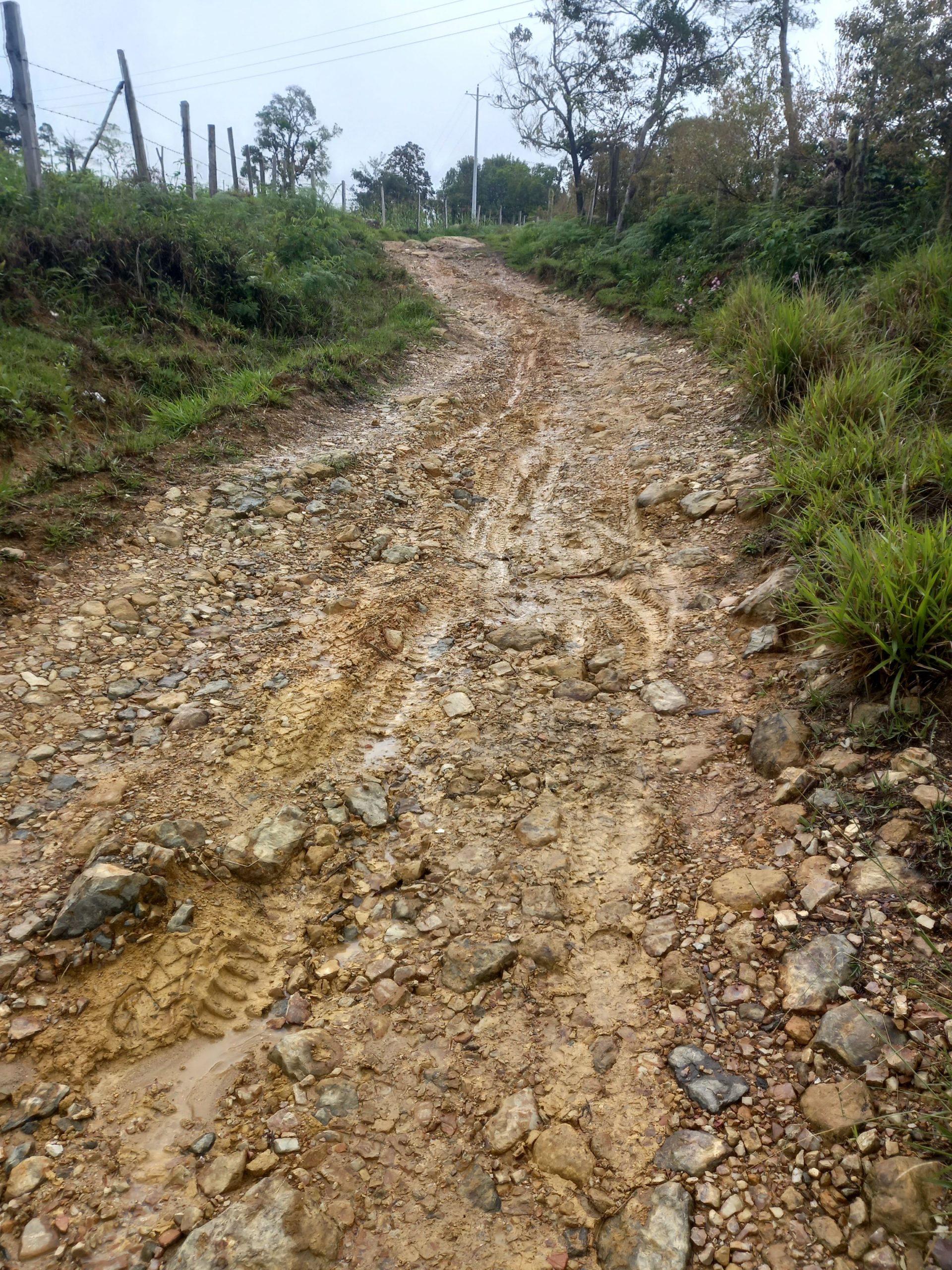 Étape courte mais stressante! Quitter le finca, quasiment sous la pluie, puis descendre par la version « Dolores » (je te rappelle nous sommes montés par San Andres…).