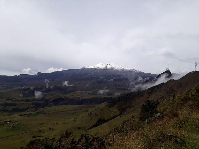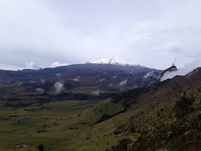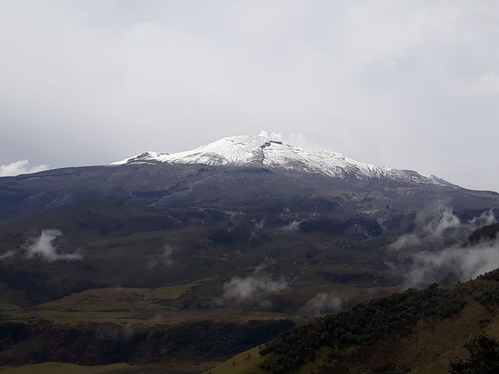 Premièrement on remonte les 7 kilomètres de chemin menant aux termes. Et l’on profite au passage d’une belle vue sur le sommet du Ruiz enneigé!