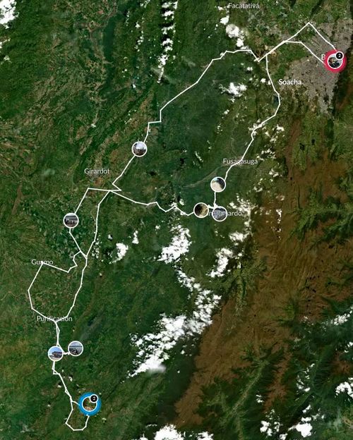Avec une dernière carte présentant les principales étapes: Agua de Dios, El Espinal, San Andres, Doroles, Prado, Pandi, San Bernardo, Arbelaez….