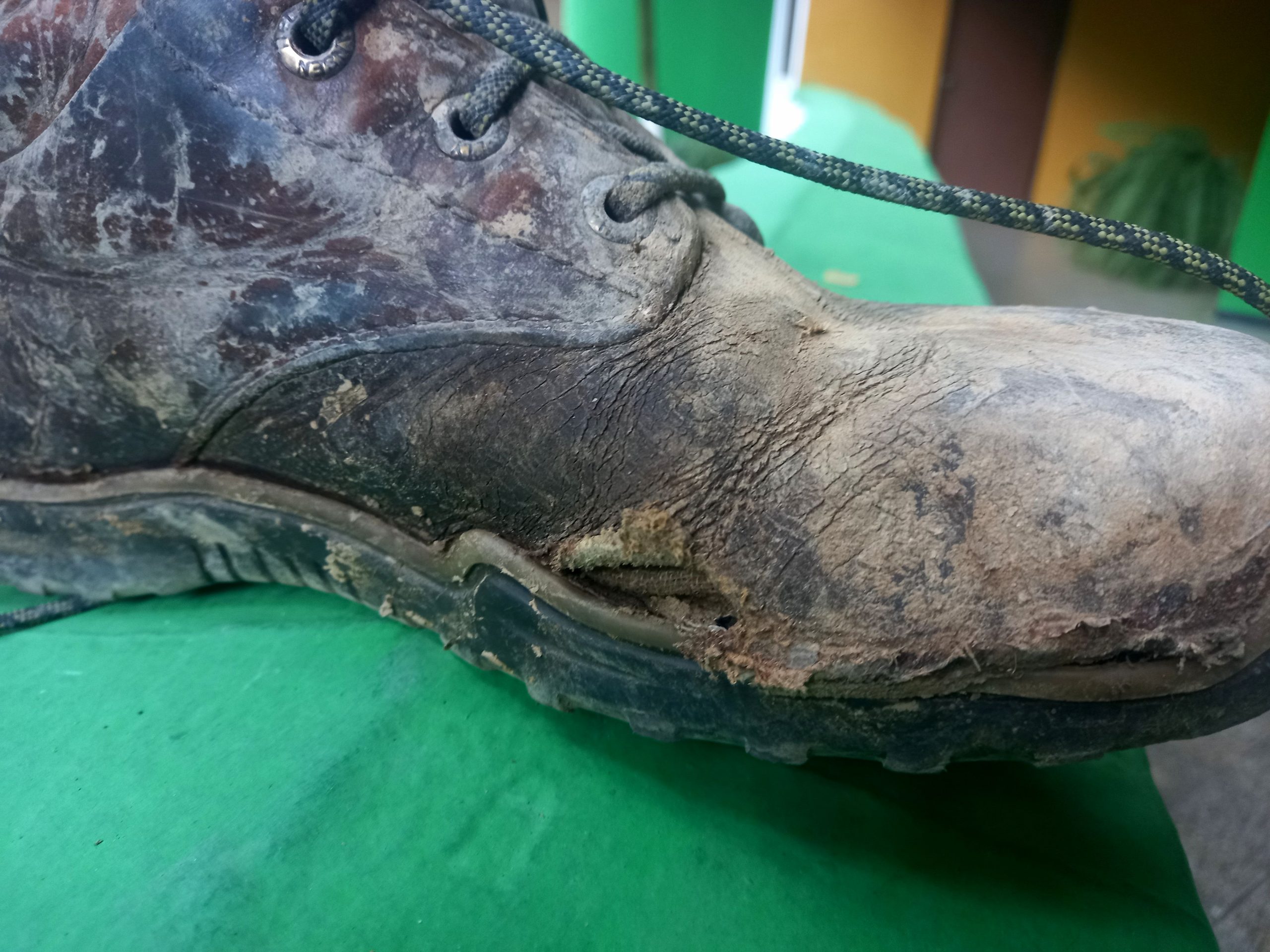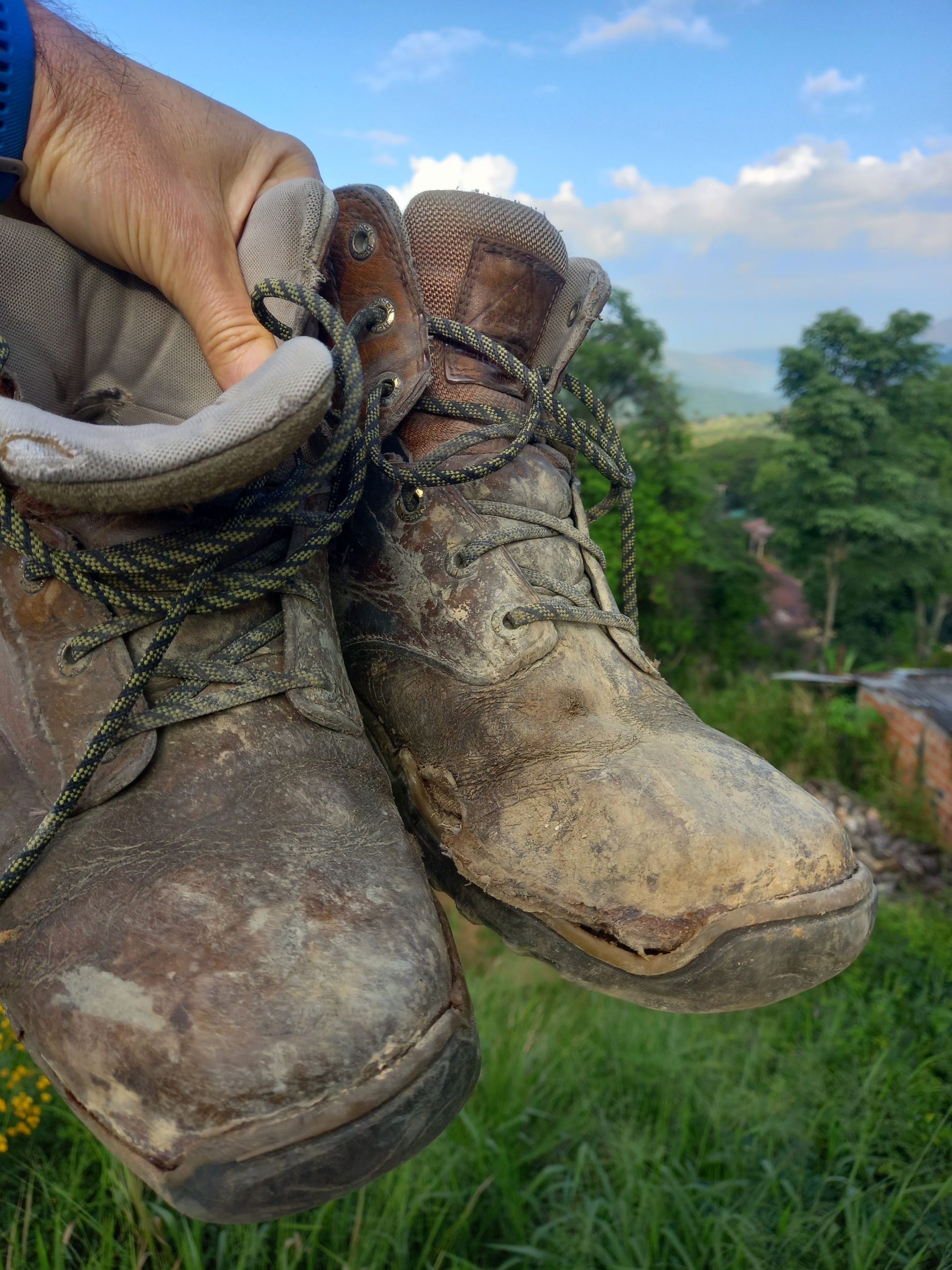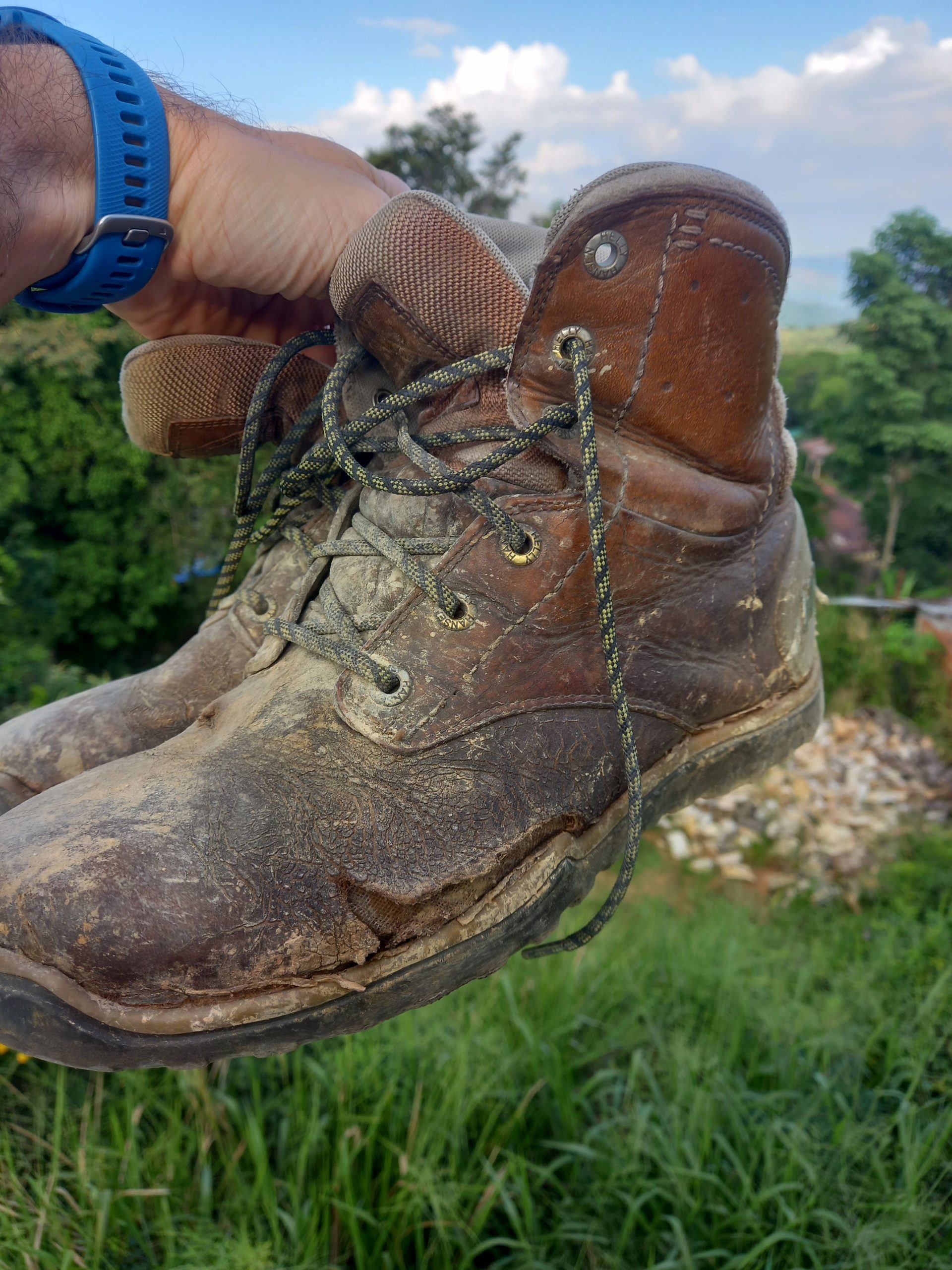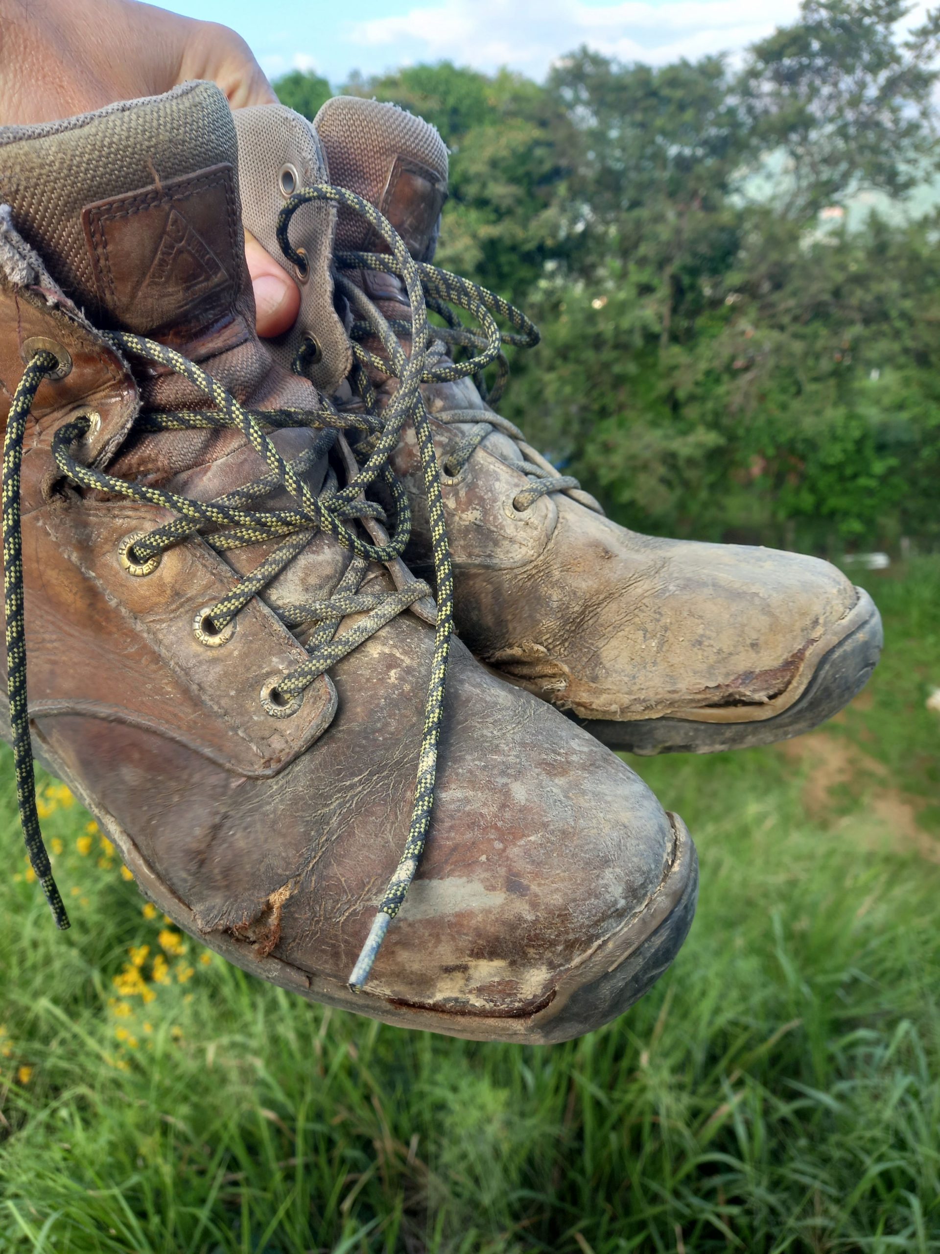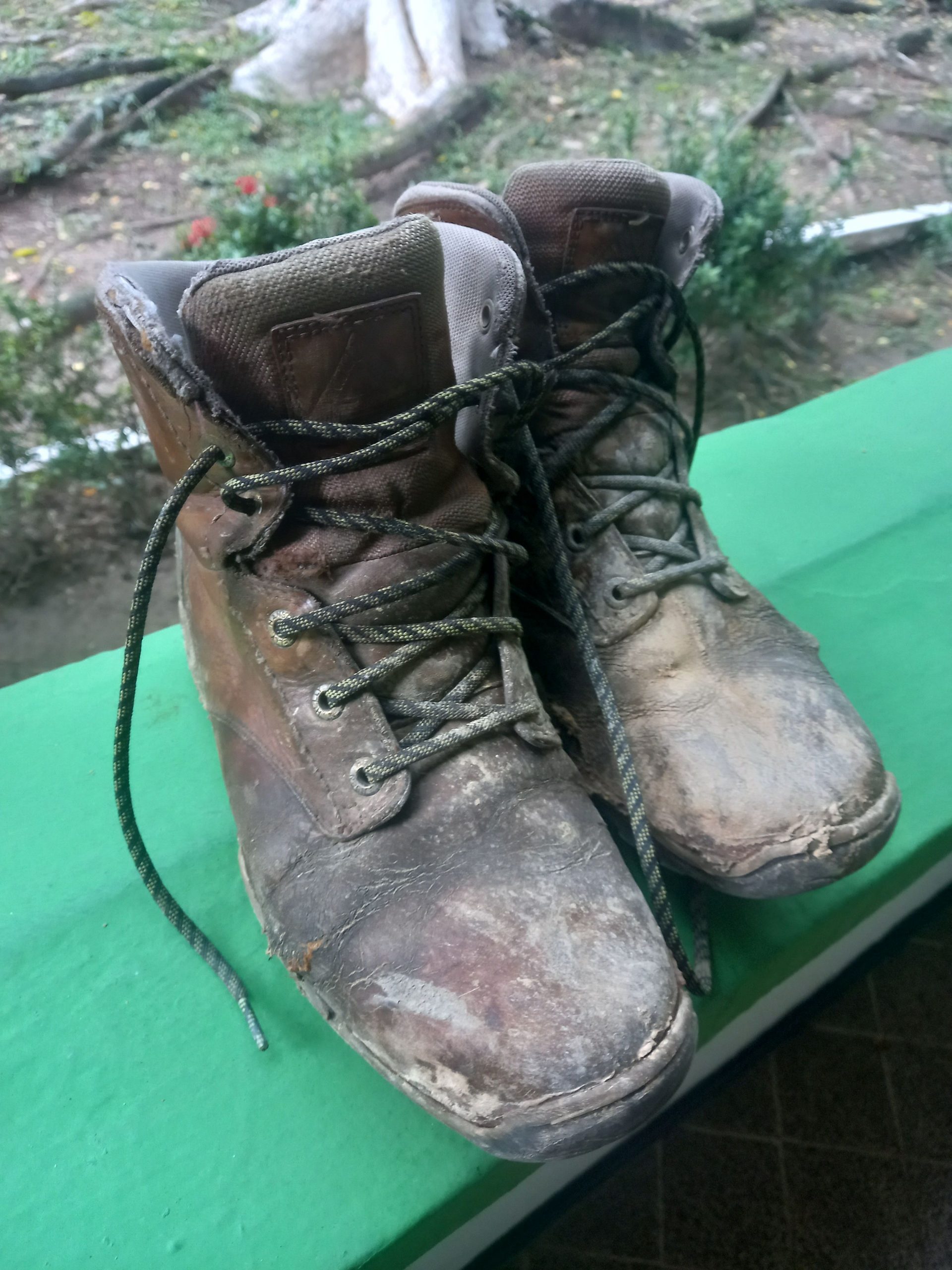 Après 14 ans de bons et loyaux service, 2 à marcher dans la neige norvégienne, 2 dans le froid sibérien de l’hiver coréen et 5 de moto en Colombie, ce fut le dernier baroud de mes chaussures Helly Hansen, achetées en 2008 en super promo à Oslo, plus étanches depuis quelques temps déjà, ressemelée à Bogota et qui ne sont même pas repassées par l’appart! Dont on a vu la détérioration étape après étape, en croisant pour les doigts qu’elles tiennent jusqu’au retour!