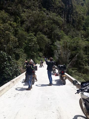 Mais on finira bien par sortir de la brume et arriver à notre point final, l’hôtel des termes, heureux comme d’habitude mais cette fois, trempés et pas de sueur! Les motos ont elles-aussi souffert, car outre qu’elles soient couvertes de boue, l’altitude entraîne parfois des pertes de puissance inquiétantes!!