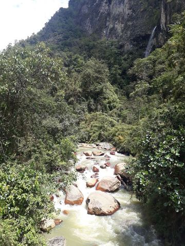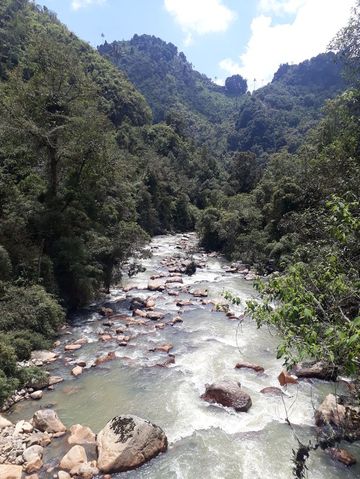 On commence avec une splendide (encore une) piste, boueuse mais juste ce qu’il faut grâce au soleil qui brille fort et l’assèche! Des palmiers, des descentes vertigineuses, de sérieuses montées, un pont, une cascade, de la verdure et enfin l’arrivée à Murillo!