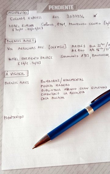 Je profite de la grippe fatale qui m’attaque juste avant Noël, pour faire mes bagages (seulement cabine, moins de 10 kg mais tu verras que cela passe, puis plus tard pourquoi ça passe…) et finaliser un peu le programme (billets entre Buenos Aires et Montevideo, hôtel à Montevideo…)