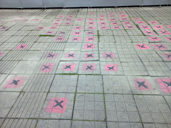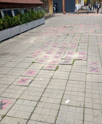Jolies les petite croix noires sur fond rose ! Il y en a des trous et des bosses au sol …