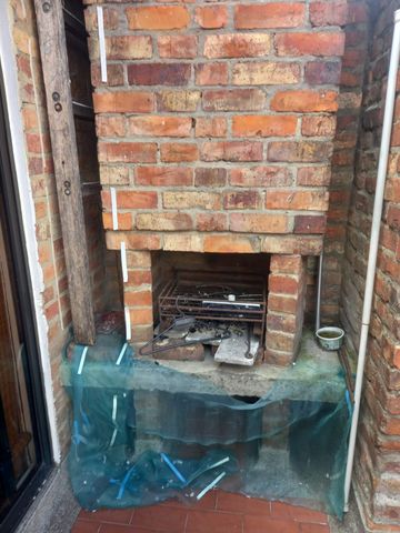 Je termine donc avec la terrasse forcément! Même « cheminée » extérieure pour chauffer la planète, qui semble plus à un barbecue ici. Plus petite mais suffisante pour ma table et mes plantes.