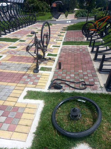 Plus facile le dimanche, c’est Ciclovia, des petits réparateurs partout! Enfin presque….