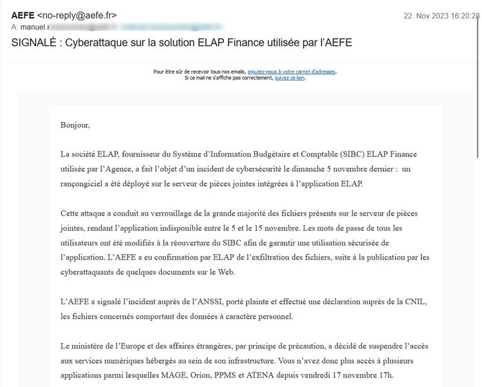 Lié au boulot mais beaucoup beaucoup moins léger, l’AEFE nous a averti par mail interne que ses services financiers ont été hackés et que nos données dont nos numéros de compte sont dans les mains de tierces personnes!