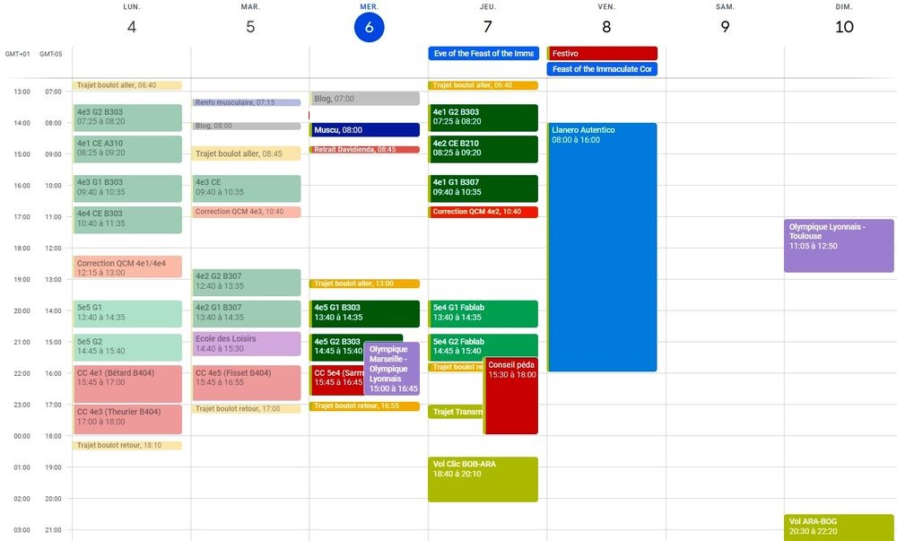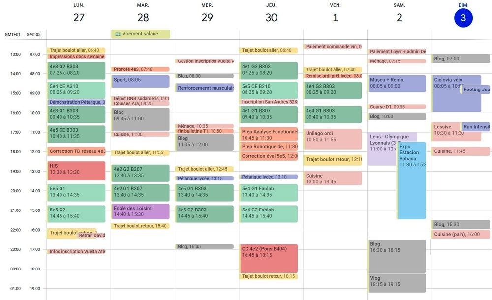 Pro: 2 semaines assez pleines, surtout avec des fin d’après-midi en conseils de classe.