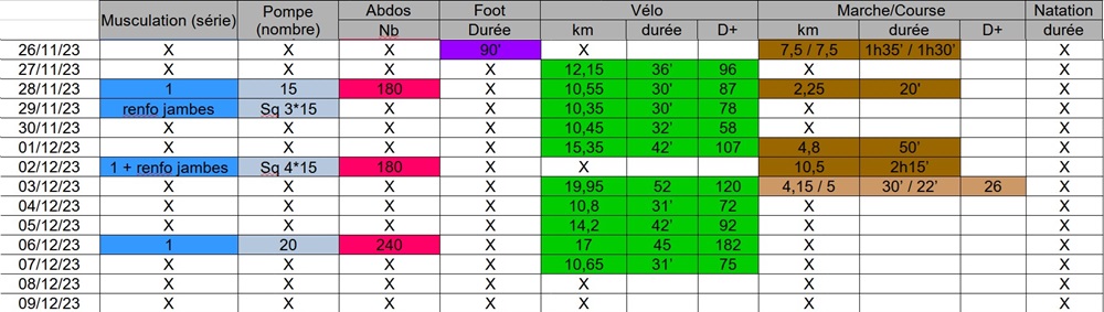 Sport: Pas de foot, ni à la télé ni sur le pré. Même si mes coéquipiers y sont ce dimanche m,atin pour éviter la relégation lors d’un barrage. Du vélo donc, de la musculation, du renforcement musculaire et de la course. Et un bilan rapide (Strava pour novembre entier et l’artisanal) sans aucun photo.