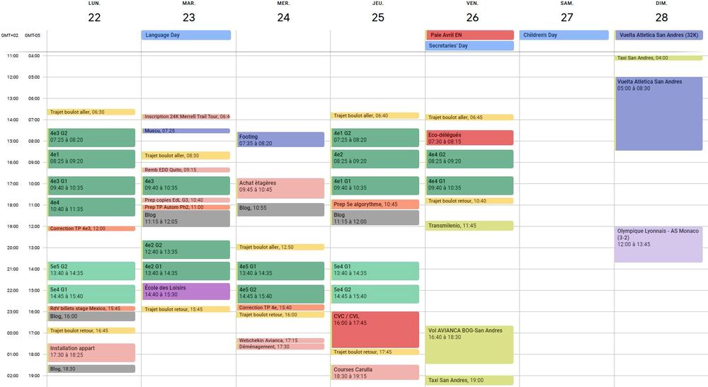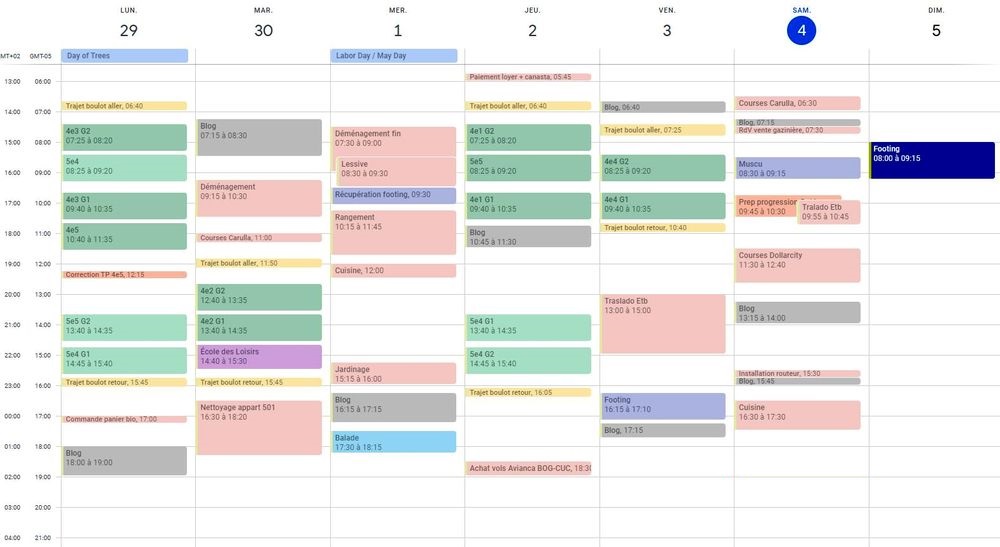 2 semaines d’agenda, 2 au boulot, mais la 2e avec un jour férié, le mercredi 1er mai!