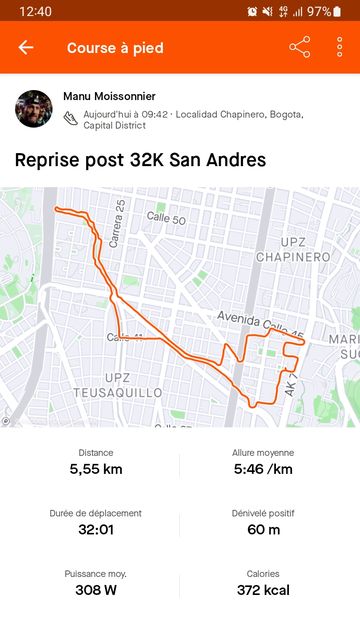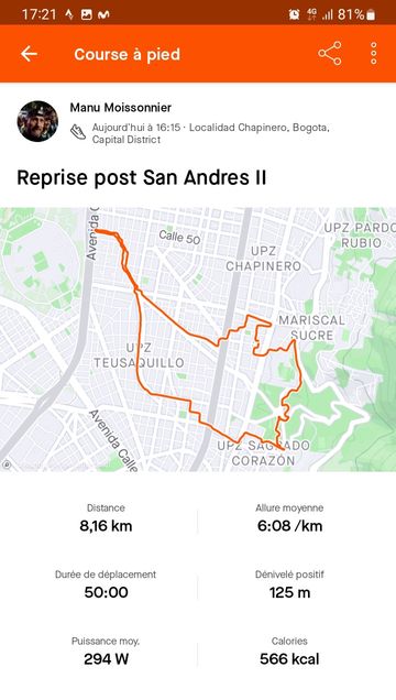 Beaucoup d’articles sur ce thème cette semaine (le bilan de 2 semaines de préparation, la course Vuelta a San Andres) alors on fait light ce jour: pas de foot à la télé pour cause d’emploi du temps incompatible avec les horaires des matchs de Ligue des Champions. Deux semaines de vélo pour le boulot, et un légère reprise de la course à pied (mercredi et vendredi).