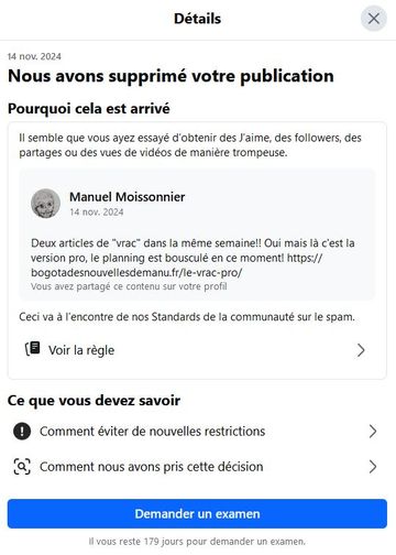 Toujours d’incompréhensibles décisions de Youtube où je relaie mes posts…. (refus du « vrac pro » ou des « étiquettes de Dédé le fromager »). Et un peu de stats de visite, dans la moyenne.
