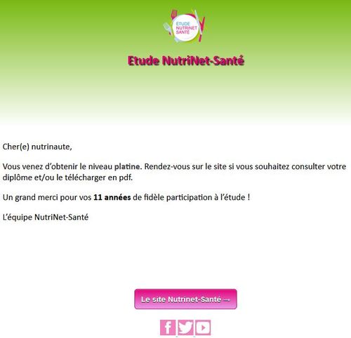 Santé: à part noter que cela fait 11 ans que je participe à l’étude à grande échelle sur l’alimentation des français, Nutrinet…..